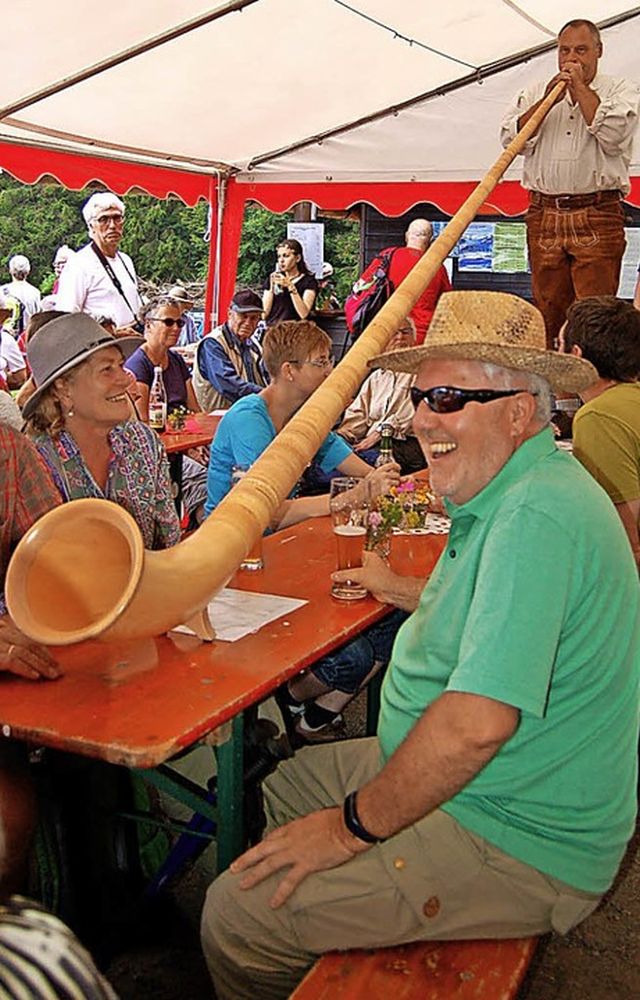 Los ging es bereits am Samstag um 16 Uhr mit einem Feierabendhock. Am Sonntag wurde im Festzelt vor der Hütte ab 11.30 Uhr bewirtet, so dass sich die herbeigewanderten Gäste entsprechend stärken konnten. Die „Naturparkhörner Bernau“ sorgten ebenso wie die Blaskapelle „Mengmol“ für die musikalische Unterhaltung.