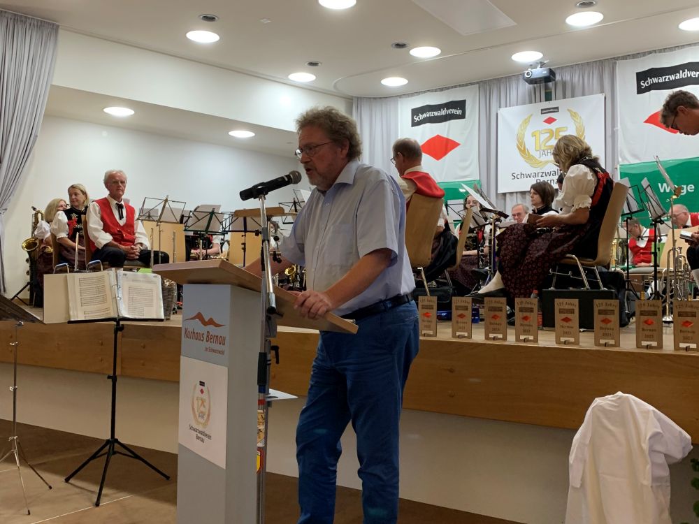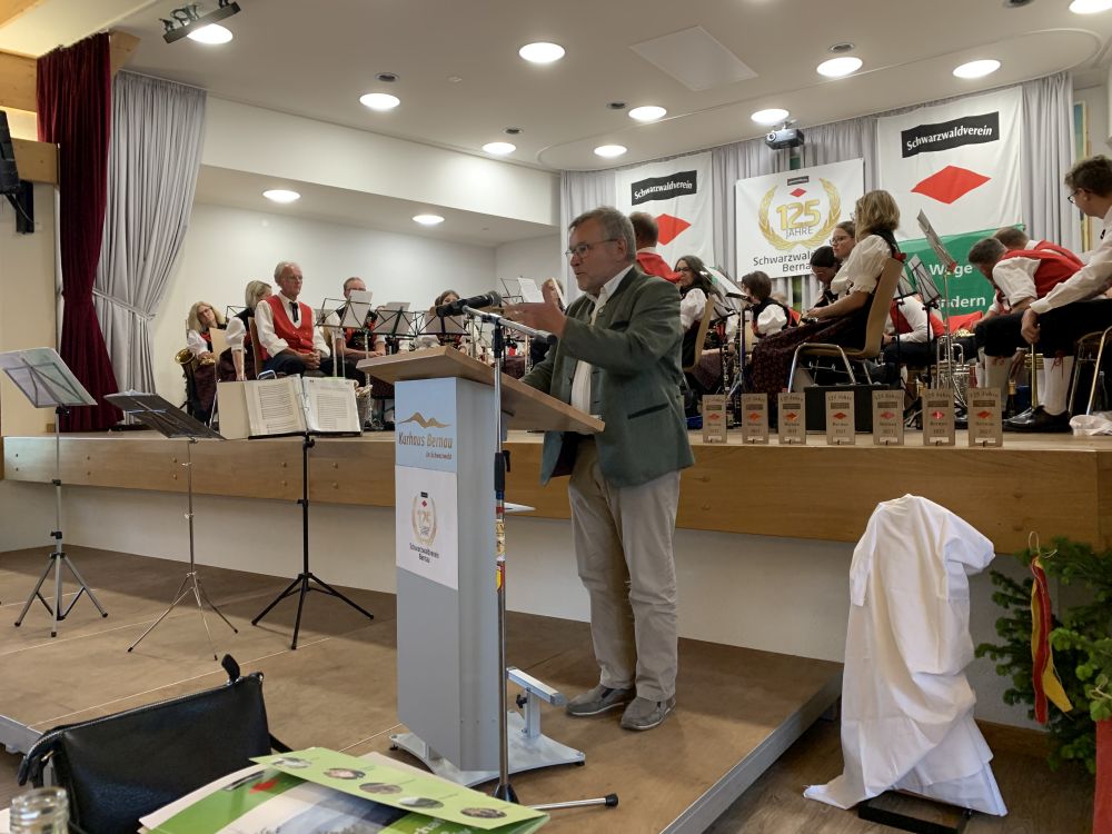 Der Vorsitzende des Schwarzwaldvereins Bernau, Franz Kaiser, nutzte die Gelegenheit, um einige hohe Ehrungen an Vereinsmitglieder auszusprechen (wir werden noch berichten). Und auch Rainer Feudel, Bezirksvorsitzender Hochrhein des Schwarzwaldvereins und Vorsitzender der Ortsgruppe Waldshut-Tiengen, war zur Rot-Kreuz-Hütte gekommen, um das Engagement der Bernauer Ortsgruppe zu würdigen. „Ihr seid ein sehr aktiver Verein, hier gibt es keine Auflösungsprobleme“, betonte er in seinem Grußwort und wünschte noch viele erfolgreiche Jahre.