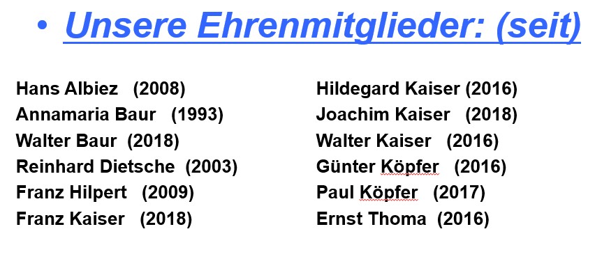 Präsident Meinrad Joos und Vorsitzender Franz Kaiser nutzten die Gelegenheit, um einige hohe Ehrungen an sehr verdiente Vereinsmitglieder auszusprechen.