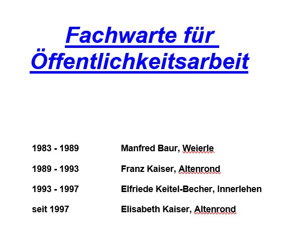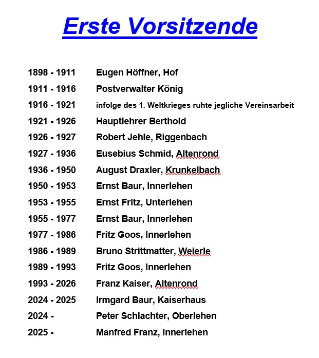 Am 04. November 1994 verstarb Ehrenvorsitzender Ernst Baur. Er hat die hundertjährige Geschichte unserer Ortsgruppe wie kein zweiter geprägt. Von 1950 bis 1953 und von 1955 bis 1977 war er Vorsitzender, von 1953 bis 1955 stellvertretender Vorsitzender und darüber hinaus von 1956 bis 1968 zugleich Schriftführer.