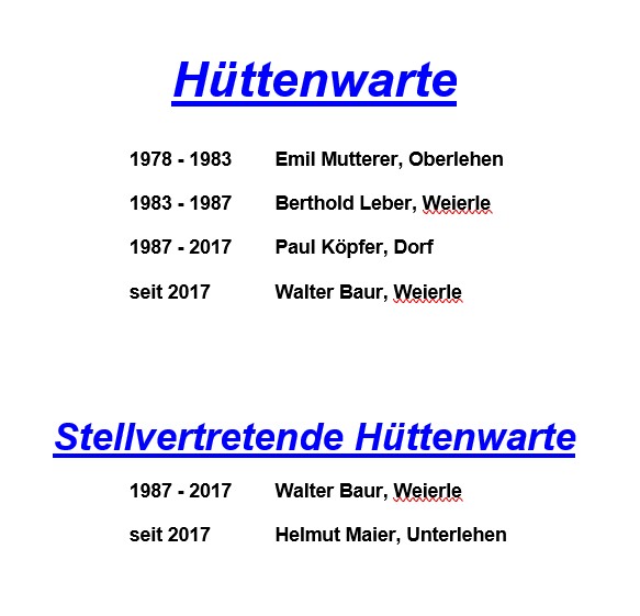 Insgesamt wurden beim Bau 1.500 Arbeitsstunden geleistet und die Materialkosten lagen bei 50.000 DM. Großen Dank am Zustandekommen gebührt Emil Mutterer sowie dem Staatlichen Forstamt St. Blasien.