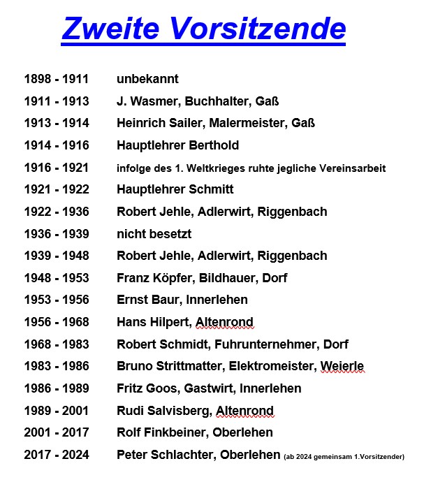 Am 30.08.2017 verstarb Ehrenvorsitzender Fritz Goos. Er hat sich viele Verdienste um den Schwarzwaldverein erworben, in den er 1963 eintrat. Von 1977 bis 1986 und nochmals von 1989 bis 1993 war er Vorsitzender und von 1986 bis 1989 Stellvertretender Vorsitzender. Seit 1993 war er Ehrenvorsitzender und seit 1998 Ehrenmitglied.